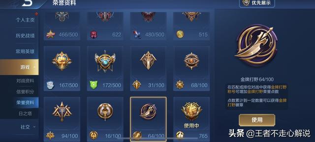 当在游戏中获得500次金牌打野称号时,就可以解锁金灿灿的王牌打野成就了。